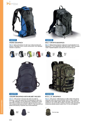 BAG & ACCESSORIES holder that can be folded into the dedicated zipped pocket under the bag • compartment, loop patches, MOLLE webbing, compression straps, ergonomically