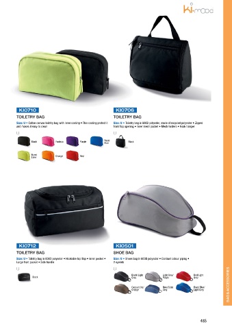Size: U • Toiletry bag in 600D polyester • Hookable top flap • Inner pocket • Size: U • Shoes bag in 600D polyester • Contrast colour piping •