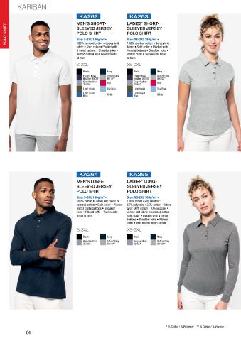 * % Cotton / % Polyester ** % Cotton / % Viscose