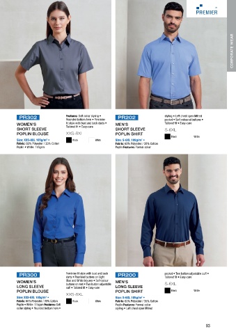 Poplin • White: 115gsm Poplin Features: Formal collar