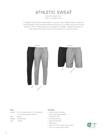 self fabric cuffs. The Athletic Pants has two zipped front pockets, while the shorts has two