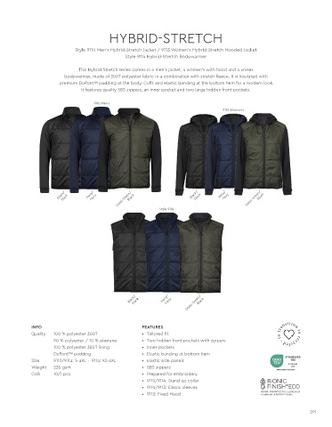 Style 9110 Men's Hybrid-Stretch Jacket / 9113 Women's Hybrid-Stretch Hooded Jacket