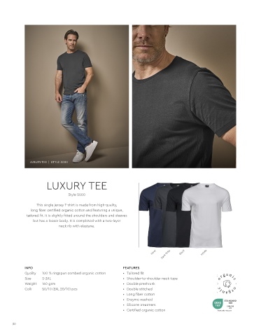 Quality 100 % ringspun combed organic cotton • Tailored fit