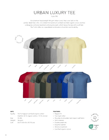 Quality 100 % ringspun combed organic cotton • Regular fit