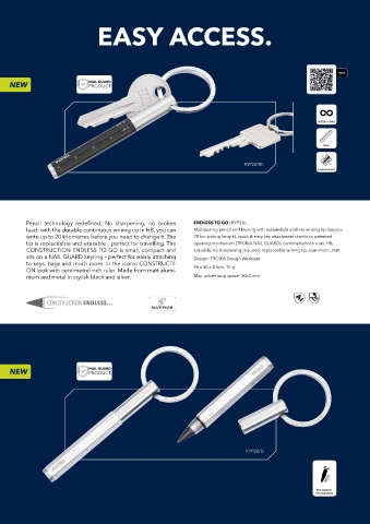CONSTRUCTION ENDLESS TO GO is small, compact and erasable, no sharpening required, replaceable writing tip, aluminium, matt
