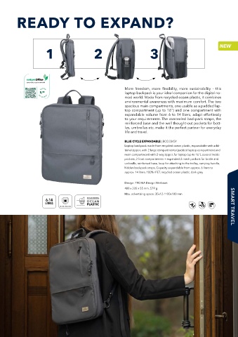 Laptop backpack made from recycled ocean plastic, expandable with addi-