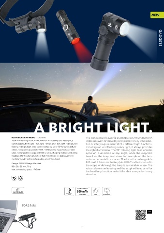 flashing red light, light head can be rotated by up to 90° for optimal illumi- including red and flashing safety light, it always provides