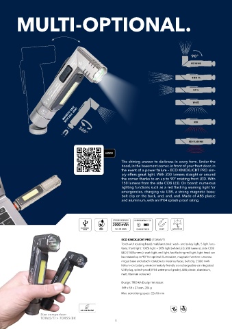 Torch with rotating head, multifunctional: work- and safety light, 5 light func-