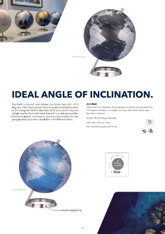 degrees. Our classic globe is true to scale and tilted by exac- Globe with 25 cm diameter, chrome-plated metal base with a brushed look,