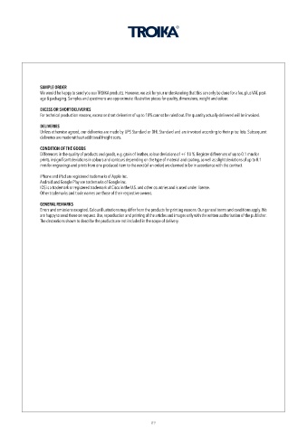 Differences in the quality of products and goods, e.g. grain of leather, colour deviations of +/- 10 %. Register differences of up to 0.1 mm for