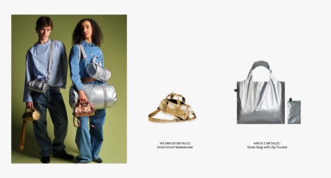 WE.MM.GS METALLIC MM.SI.Z METALLIC Gold Small Weekender Silver Bag with Zip Pocket