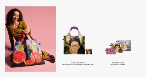 FK.SP.R FRIDA KAHLO ZP.FK FRIDA KAHLO Self Portrait with Hummingbird Recycled Bag Recycled Zip Pockets