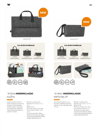 formátu A4, dvě přihrádky s h 14 zapínání na zip, praktické poutko Balení (ks): 50