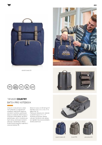 uzávěrem; velká hlavní kapsa se Balení (ks): 20
