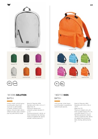 kapsou; víko proti dešti; vpředu sítotisk): na přední straně š 13 Plocha pro reklamu (cm, síto-