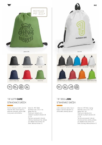 materiál rPET; hlavní oddíl se Rozměry (cm): š 36 x v 44 kapsa s bočními kapsami na Rozměry (cm): š 36 x v 45