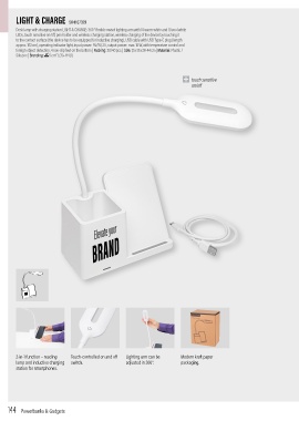 LEDs, touch sensitive on/off, pen holder and wireless charging station, wireless charging of the device by touching it