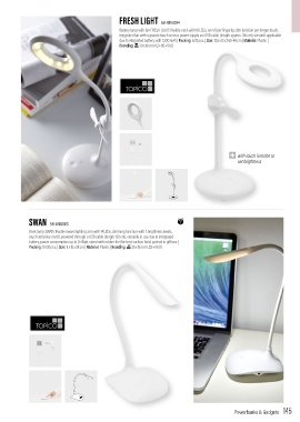touch sensitive on/off, powered through a USB cable (length 120 cm), versatile in use due to integrated