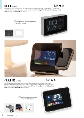 hygrometer and thermometer (for °C and °F), lit up LCD screen - black display with coloured elements, fold-out stand on the