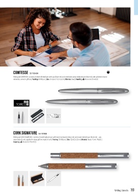 Writing set CORK SIGNATURE: consists of metal ballpoint pen with twist mechanism (blue ink) and metal rollerball pen (black ink) – grip