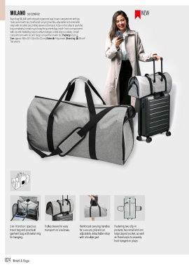 Travel bag MILANO with integrated garment bag: 1 main compartment with zip,
