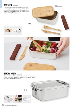 Lunch box ECO TASTE: stainless steel box with bamboo lid, rubber