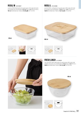 Lunch box ROSILI M, with bamboo lid: capacity approx. 350 ml, glass dish suited Lunch box ROSILI L, with bamboo lid: capacity approx. 1.060 ml, glass dish suited