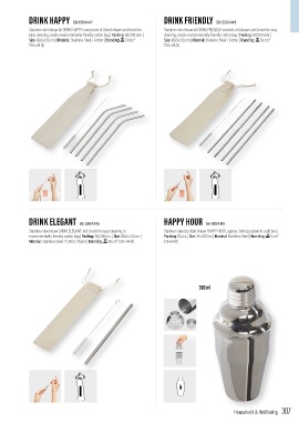 Stainless steel straw DRINK ELEGANT: incl. brush for easy cleaning, in Stainless steel cocktail shaker HAPPY HOUR, approx. 300ml, packed in a gift box |