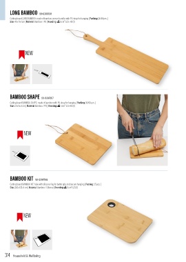 Cutting board LONG BAMBOO: made of bamboo, secure handle, with PU strap for hanging | Packing: 24/48 pcs. |