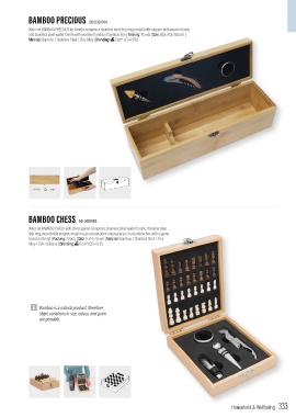 Wine set BAMBOO CHESS with chess game: comprises stainless steel waiter’s knife, stainless steel