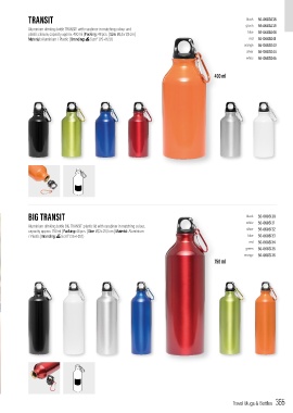 Aluminium drinking bottle TRANSIT: with carabiner in matching colour and