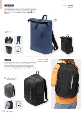 Backpack MESSENGER: front pocket with vertical zip, main compartment with zip