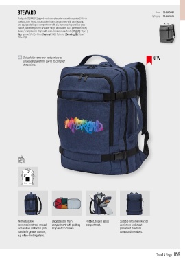Backpack STEWARD: 2 zipped front compartments, one with organiser (3 slip-in