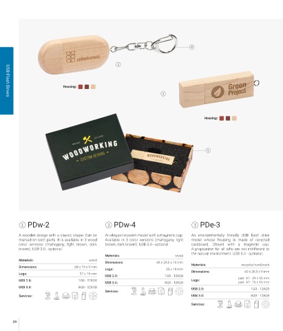 color versions (mahogany, light brown, dark brown, dark brown). USB 3.0 - optional. cardboard. Closed with a magnetic cap.
