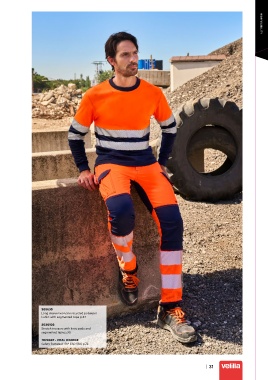 305635 HIGH VISIBILITY Long sleeve two-tone recycled polyester t-shirt with segmented tape p.24 303010S Stretch trousers with knee pads and segmented tape p.30 707004Y - VITAL ORANGE Safety footwear S1P ESD SRC p.72 31