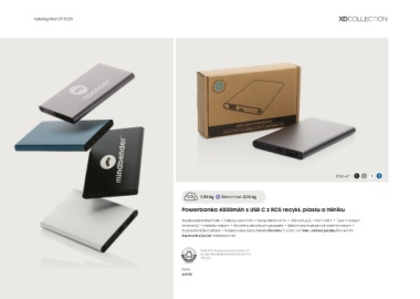 Powerbanka 4000mAh s USB C z RCS recykl. plastu a hliníku