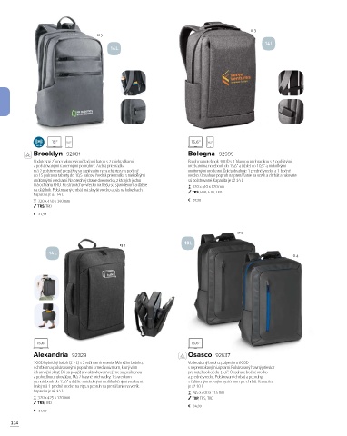 na notebook do 15,6” a ďalšie s niekoľkými multifunkčnými vreckami. s čalúneným nosným systémom pre chrbát. Kapacita