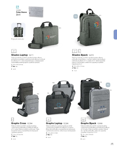 do veľkosti až 14’’. Taška má prednú kapsu, cestovný popruh notebook do veľkosti až 14’’ a tablet až 9,7”. Batoh má prednú