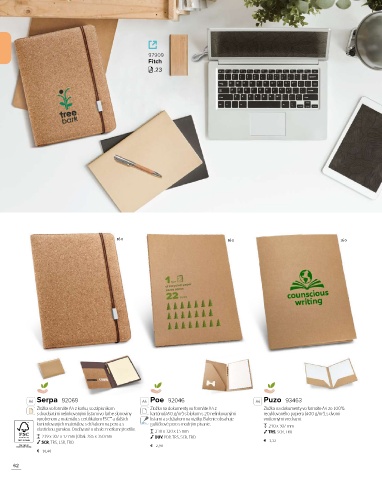 vyrobenom z materiálu s certifikátom FSC a ďalších listami a s držiakom na vizitky. Balenie obsahuje vnútornými vreckami.