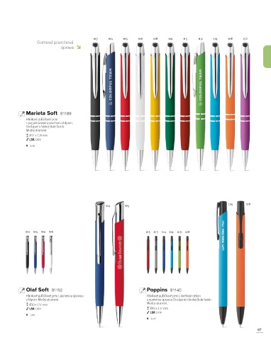 a klipom. Modrý atrament. a gumenou úpravou. Dostupné v širokej škále farieb.
