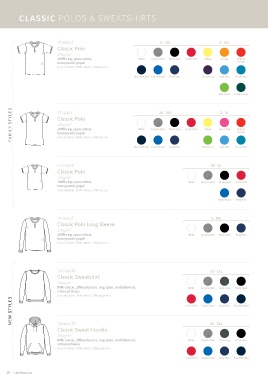 80% cotton, 20% polyester; ring-spun, multifilament; White Grey Heather Slate Grey Black Opal