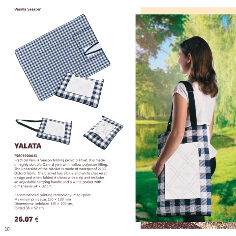 Practical Vanilla Season folding picnic blanket. It is made