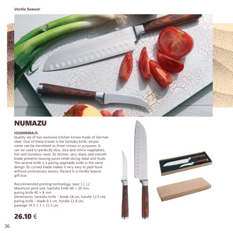 Maximum print size: Santoku knife 60 × 20 mm, Recommended printing technology: laser L1, L2