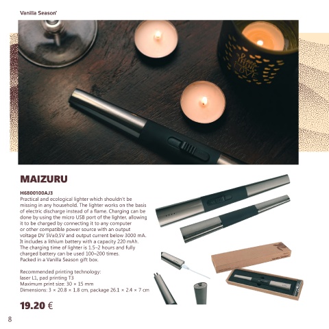 charged battery can be used 100–200 times. Packed in a Vanilla Season gift box.