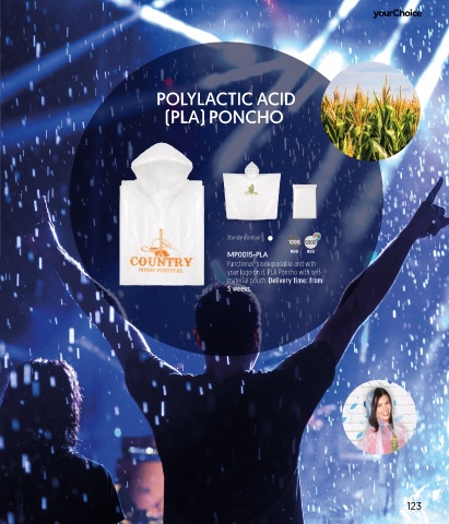 POLYLACTIC ACID (PLA) PONCHO Standard colour 1000 5000 MP0015-PLA MOQ MOQ Functional, biodegradable and with your logo on it. PLA Poncho with self- material pouch. Delivery time: from 5 weeks. 123