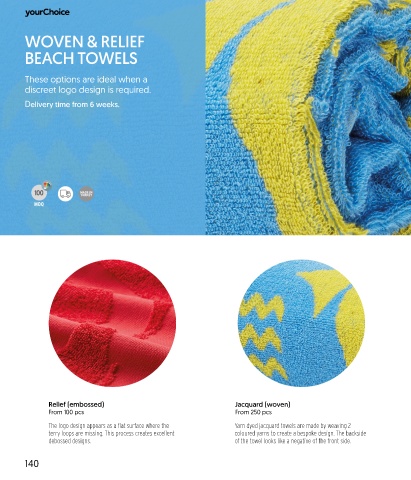The logo design appears as a flat surface where the Yarn dyed jacquard towels are made by weaving 2