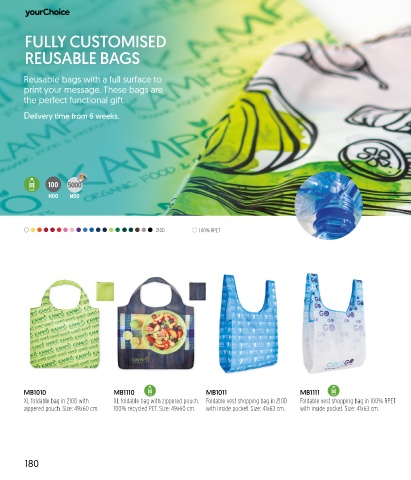 Reusable bags with a full surface to