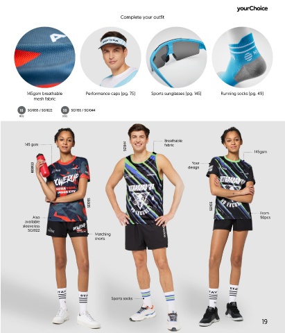 145gsm breathable Performance caps (pg. 75) Sports sunglasses (pg. 145) Running socks (pg. 49)