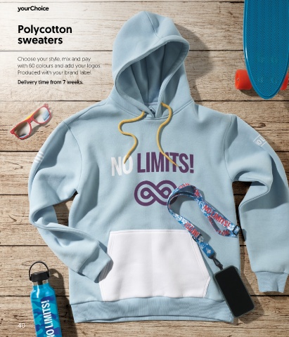 Polycotton sweaters Choose your style, mix and pay with 60 colours and add your logos. Produced with your brand label. Delivery time from 7 weeks. 40