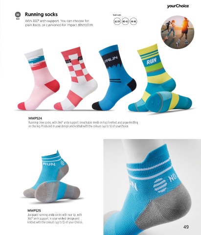 Running crew socks, with 360° arch support, breathable mesh on top forefoot and pique knitting